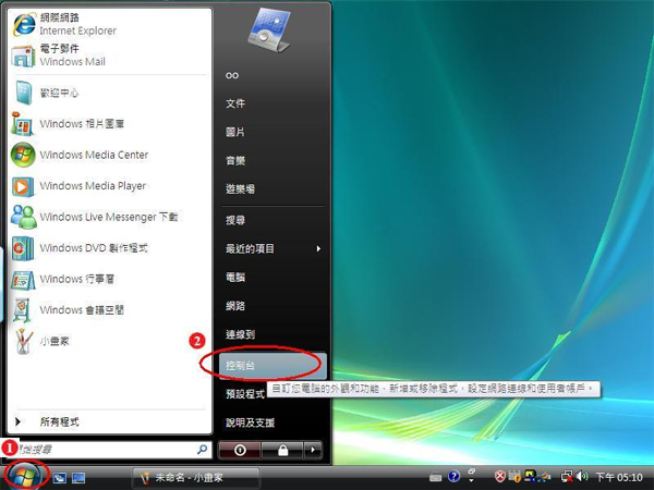 步驟1:請先點選【開始】再點選【控制台】選項即可,如下圖所示。